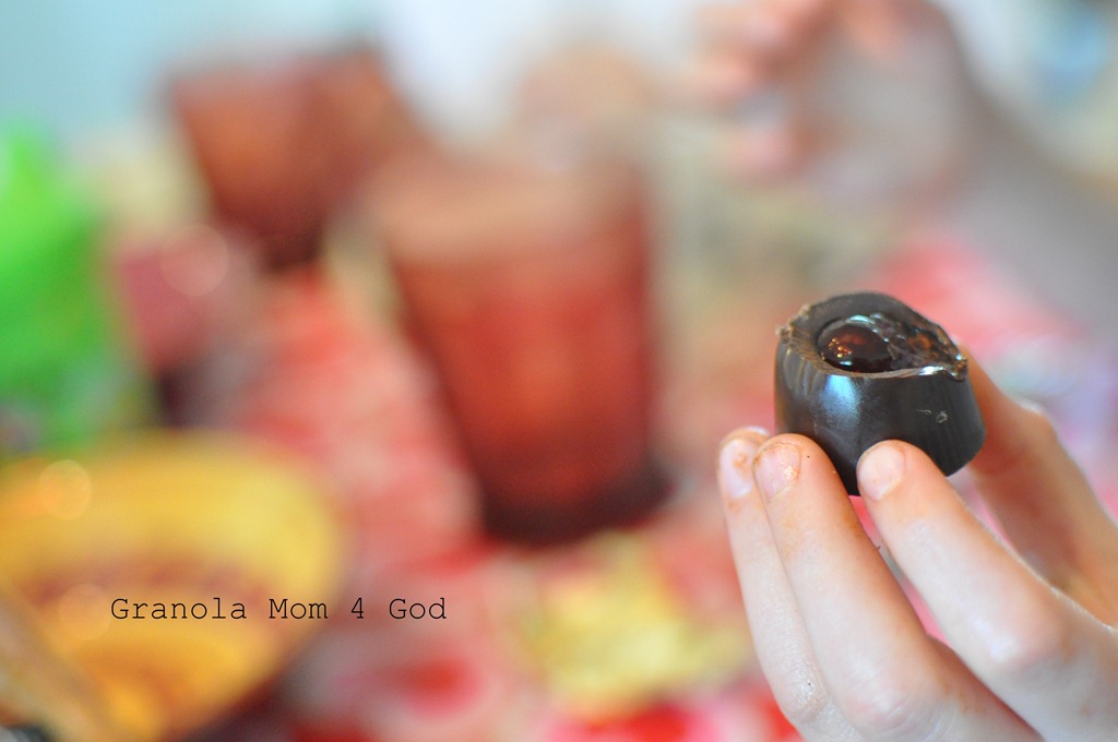I opened it. Do you no whet I see? I see some chocolate covered cherries,