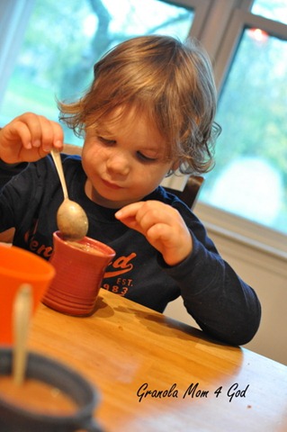While the kiddos wait for their chai to cool, I begin reading.  Even after the chai is finished we remain at the table or move to the couch.  If they appear to have restless legs from all that raw honey, I will allow them to use tracing paper and art books or quietly push a Matchbox car around on the floor.