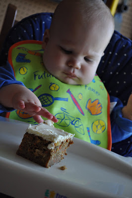 And so began Mr. Smiley’s journey into toddler hood. He enjoyed his first piece of cake, which was his first time having freshly ground wheat, smooth cream cheese, rapadura, and honey.