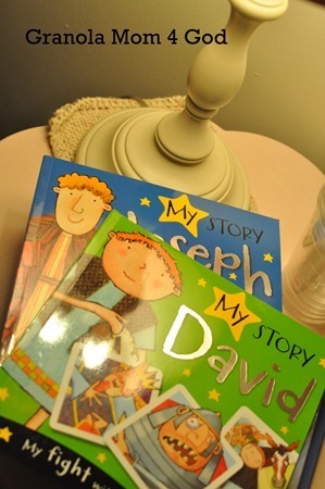 There wasn’t much discussion of our favorite Bible hero – she is three after all. (Her brothers had PLENTY to say!) I giggled through parts of the story – I loved how each book was told from the hero’s perspective.