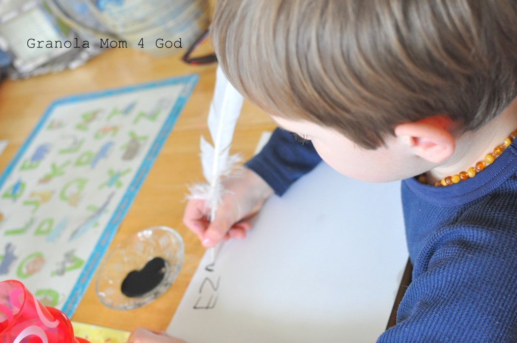We had tons of fun writing with quills . . . though I couldn’t find a real one for the life of me. Sorry — these are synthetic feathers. Sigh.