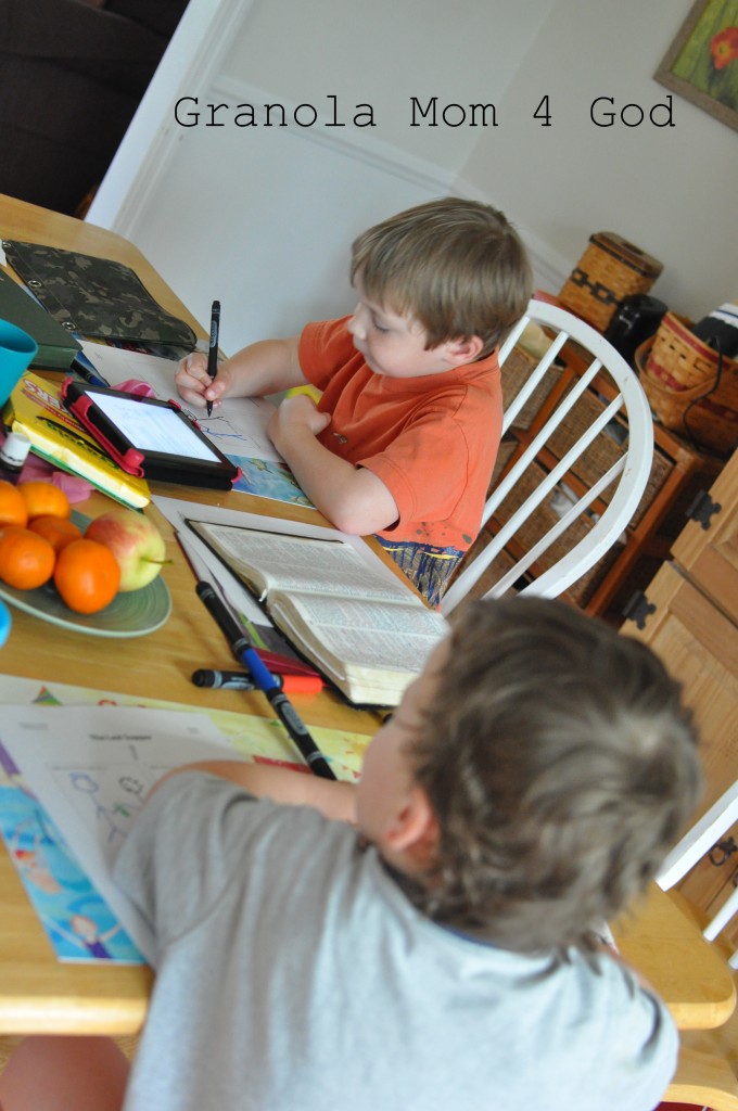 I have found that the best way to use this curriculum, is for the teacher’s manual to be read from my Kindle and the kids’ curriculum printed from our home printer or have it shipped to our house (which in the long run is probably cheaper considering the price of ink).